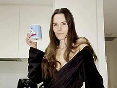 milf sucks dildo then fucks wet pussy with vibrator in kitchen 😩💦
