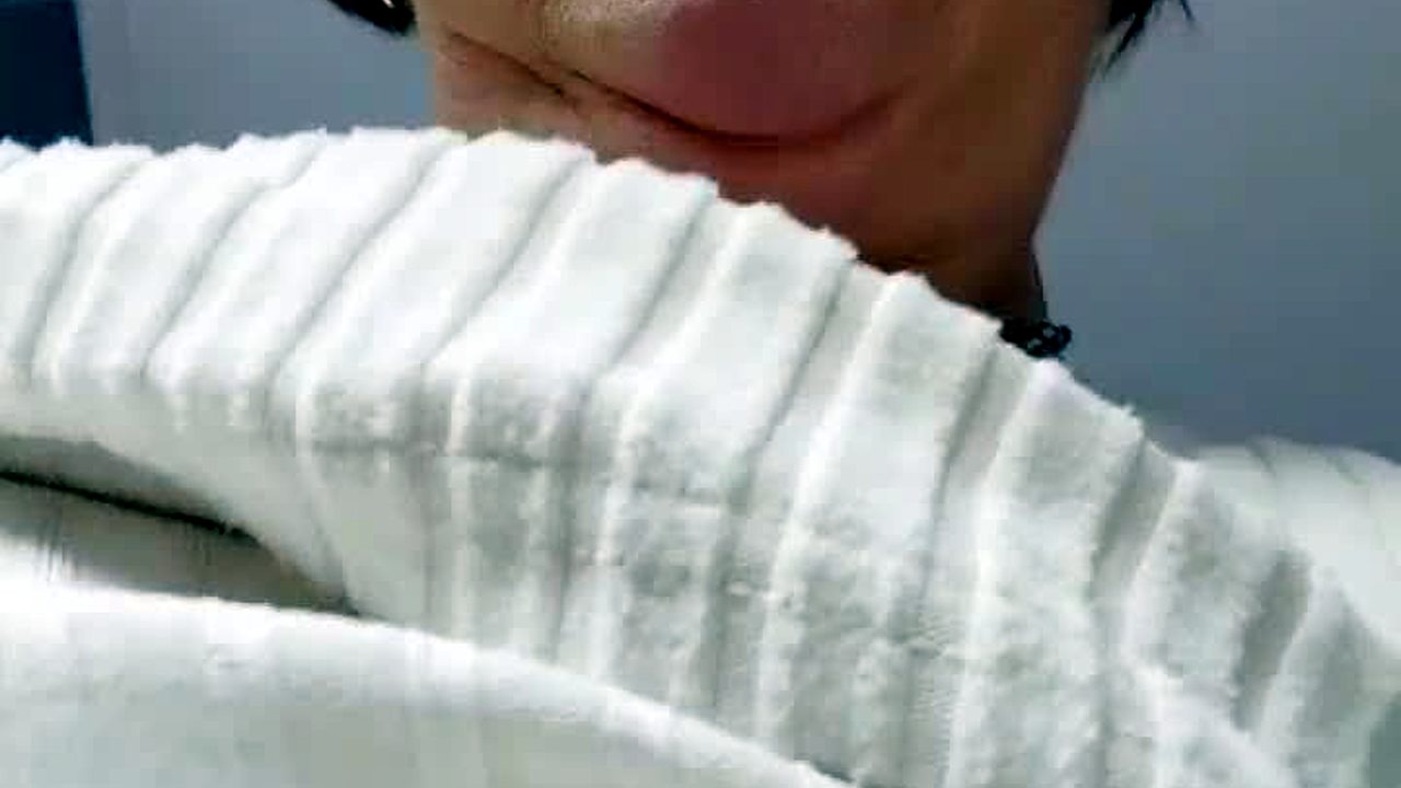 First he soaks her shirt, then drenches her hairy bush with a creamy finish.
