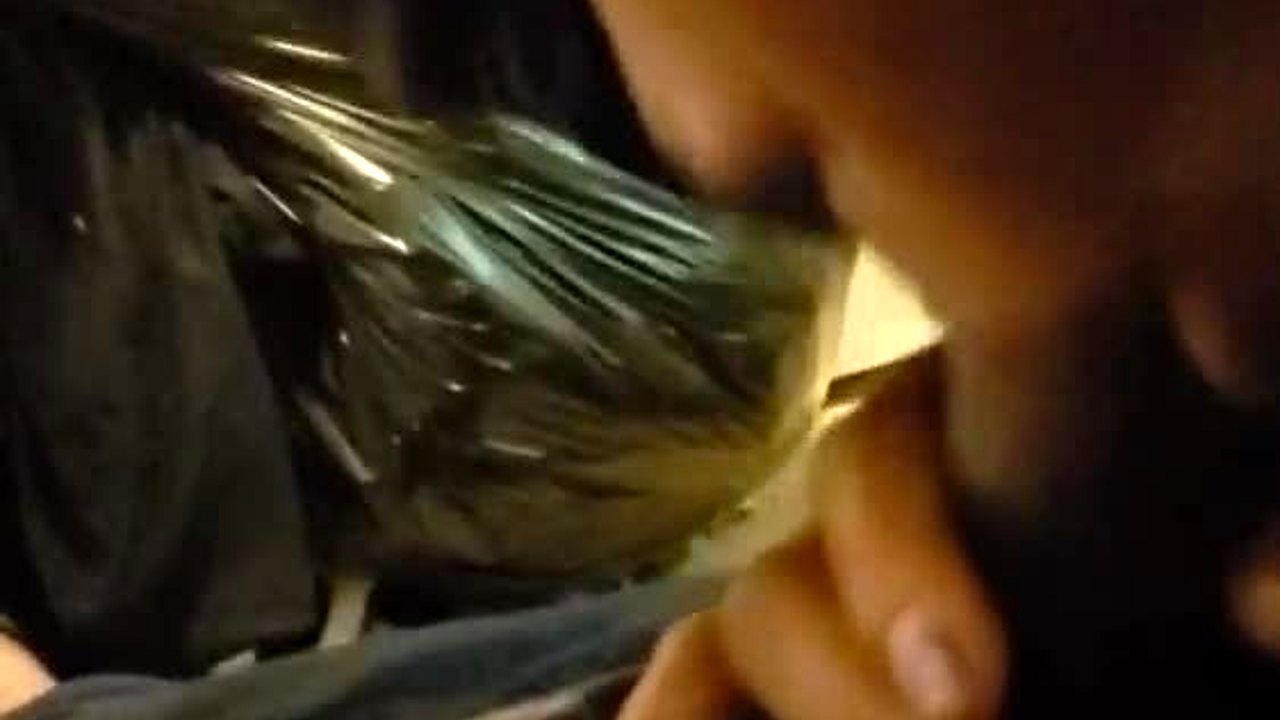 Watch this ebony throat goat take deepthroat and blowjob with cum on small tits!