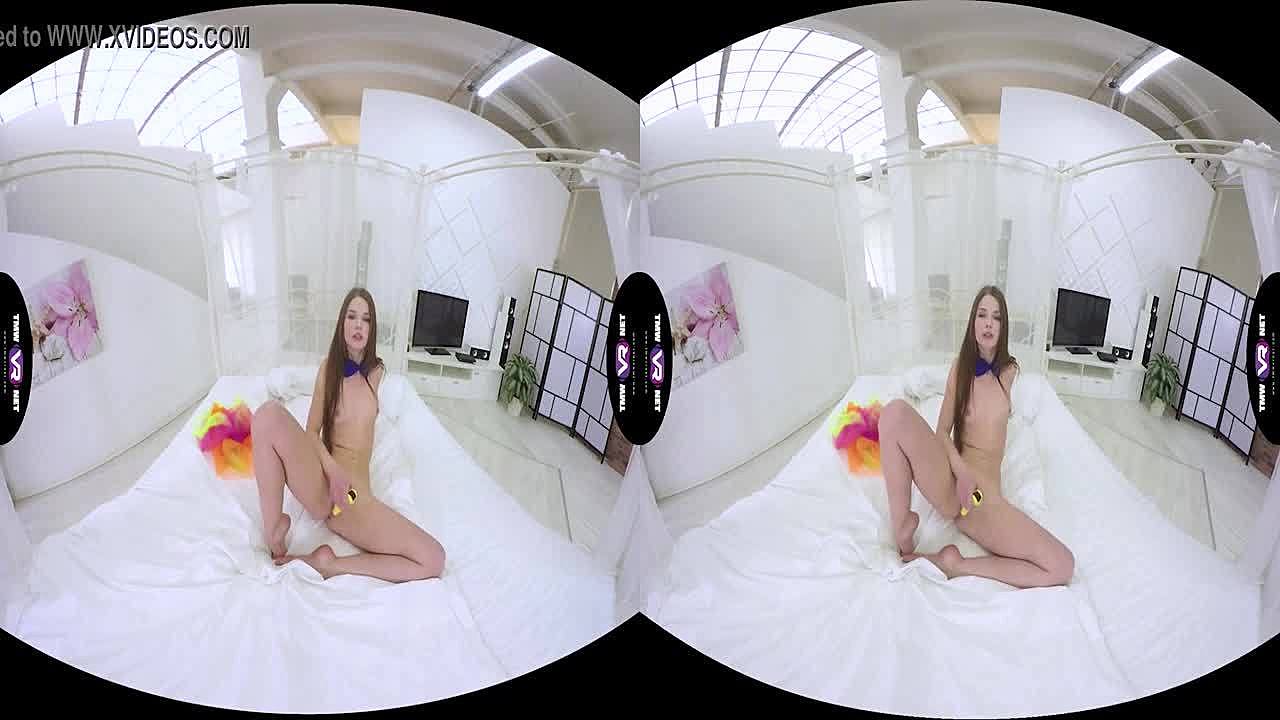 Sexlikereal Captures Bow-Tie Naked Sweetie in Solo Masturbation with Toys