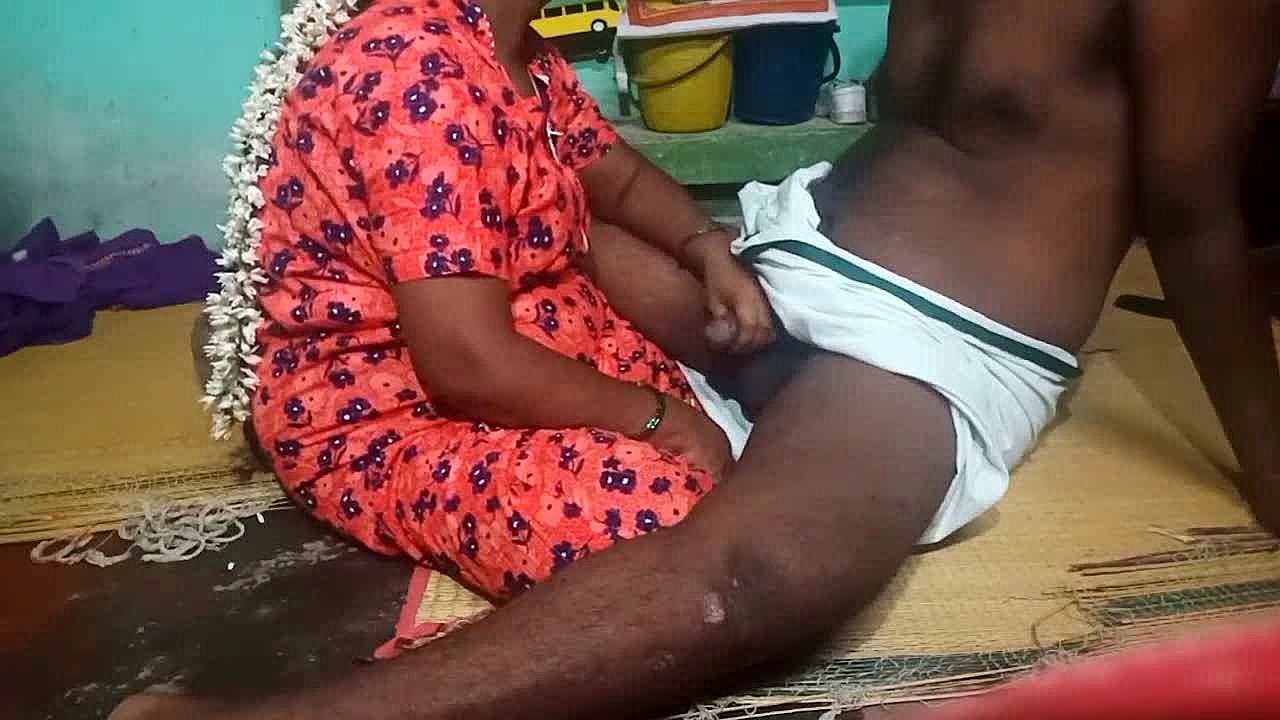 wife decides to give her husband a proper handjob in the bedroom, making him moan loud, and she nails it