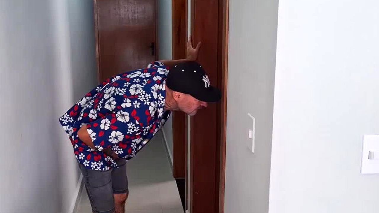 Mature guy ENTERS bathroom with SKINNY redhead in TABOO pantyhose fetish play