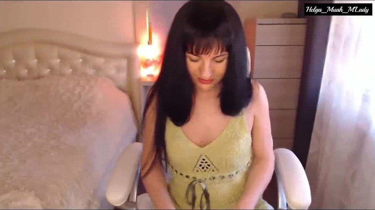 Sexy brunette milf jessy aka helga muah strips lingerie in retro style fingering small tits and perky clit