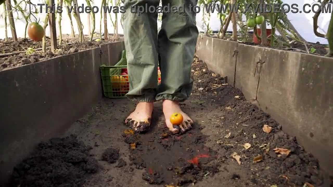 Squashing Tomatoes Barefoot in the Dirt for Relaxing ASMR Experience