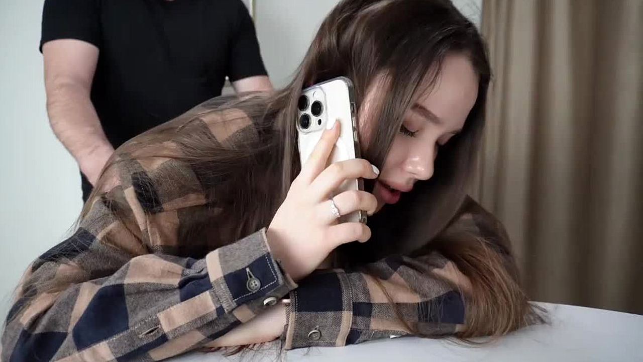 Fucking My Stepsister Doggy Style While She's on the Phone with Rough Creampie and Petite Babysitter Action
