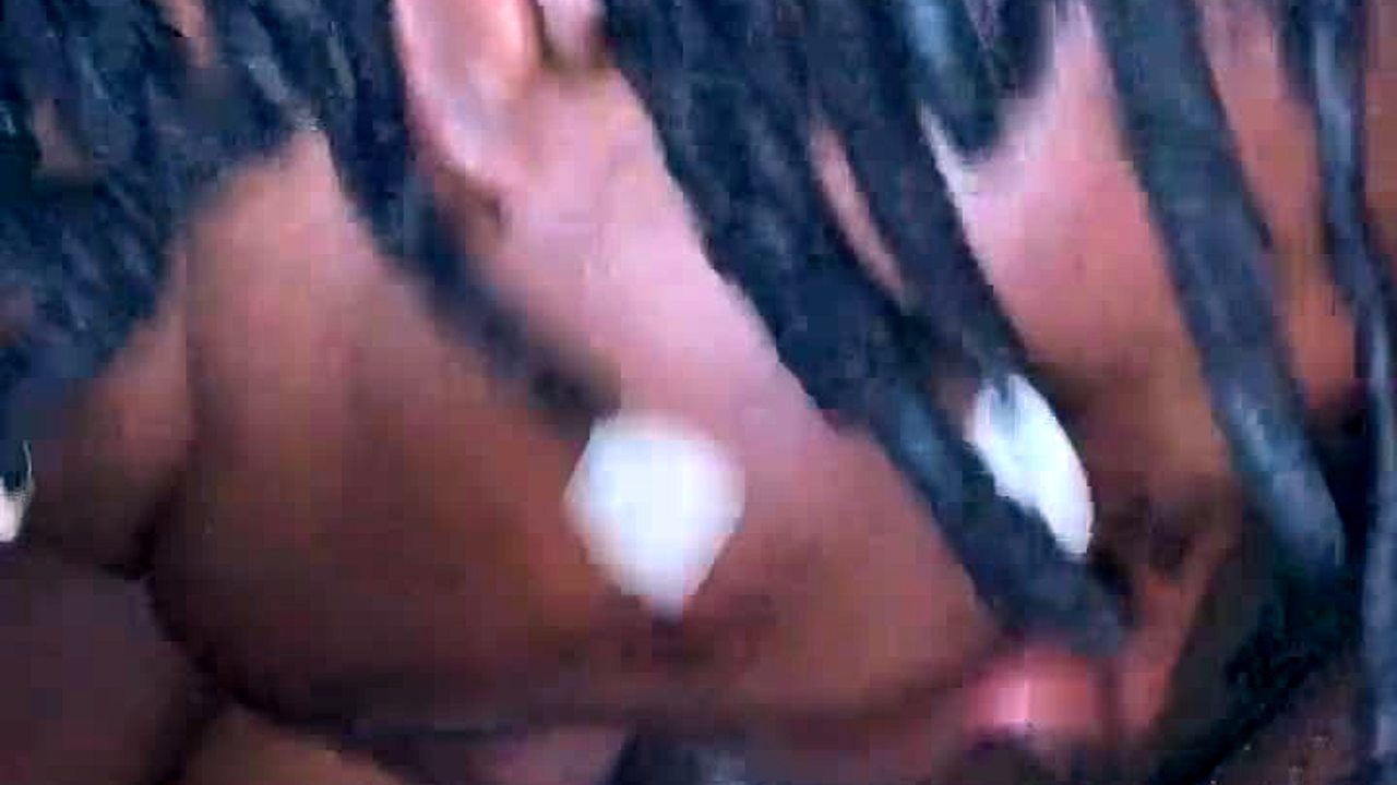 Extremely gorgeous ebony babe with huge tits sucks and rides massive cock like crazy
