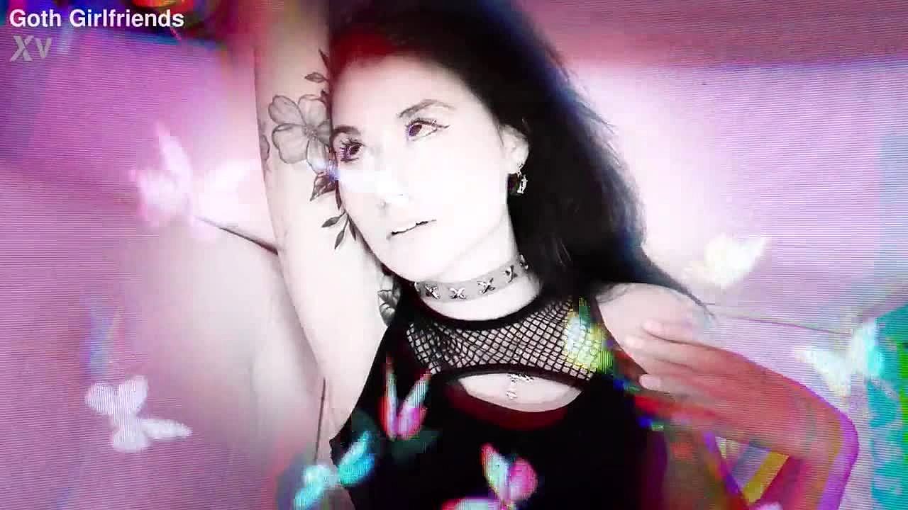Charlotte mae gets roughly fucked in those fishnets by her tattooed friend, earning that facial in hardcore goth action. Her shaved pussy takes it all.