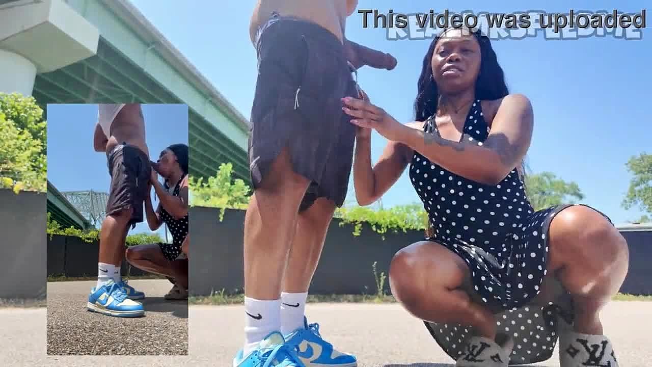 Yo, how does this pretty Memphis girl handle deepthroating that big black cock outdoors?