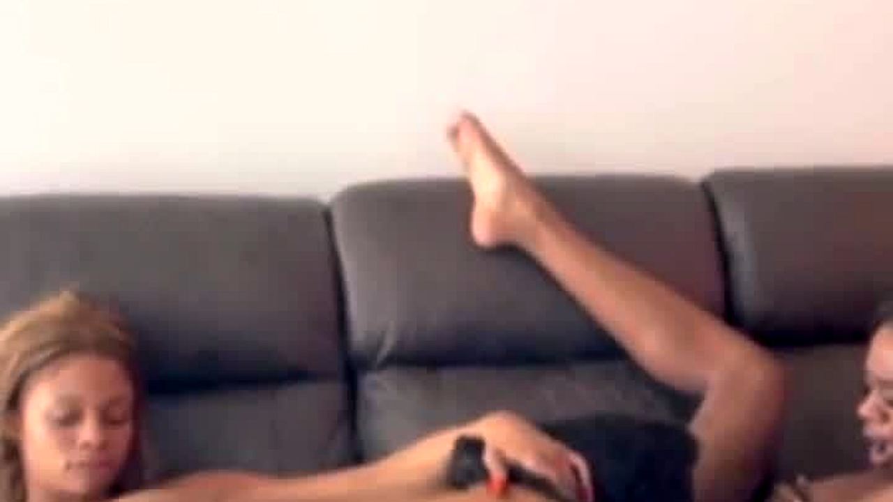Pretty Ebony Slut Wanks Oiled Pussy with Big Vibrator, So Hot!