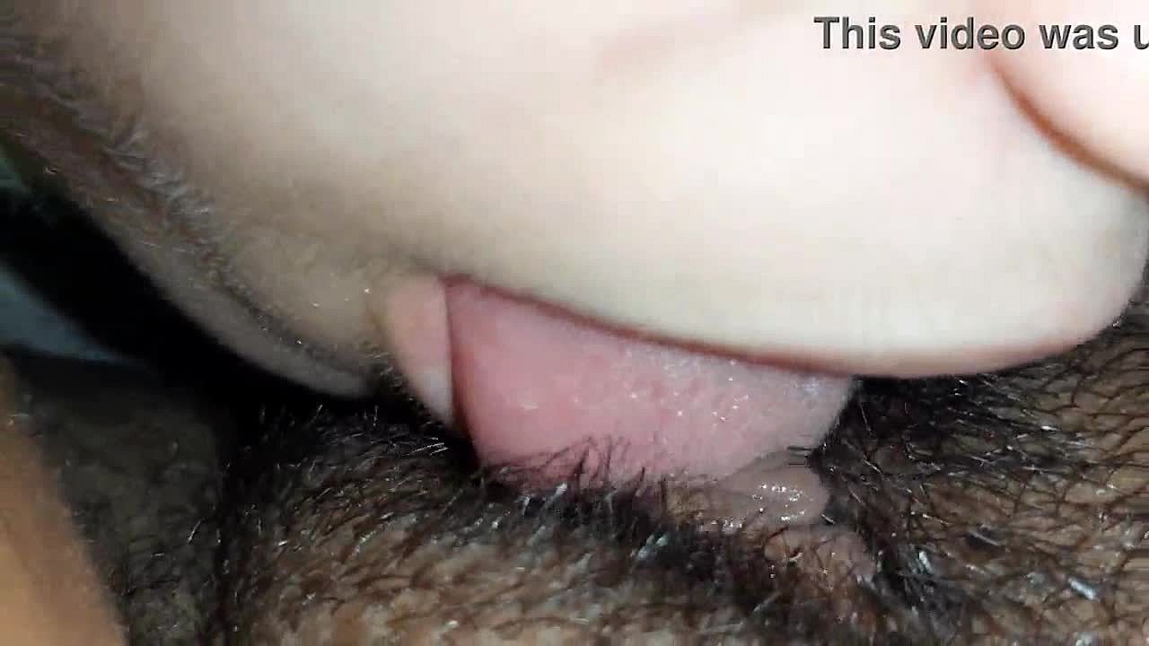 Wet brunette lesbians dive into hairy pussy licking and clit sucking up close!
