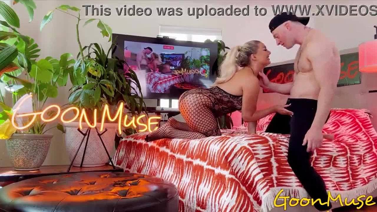 Kayley Gunner's smooth shaved pussy grips dick tightly while her big tits tease in fishnets