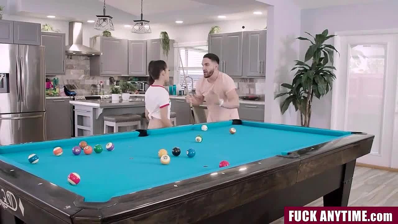 बॉयफ्रेंड के बाहर होने पर शानदार 18+ टीन को पूल टेबल पर चोदा