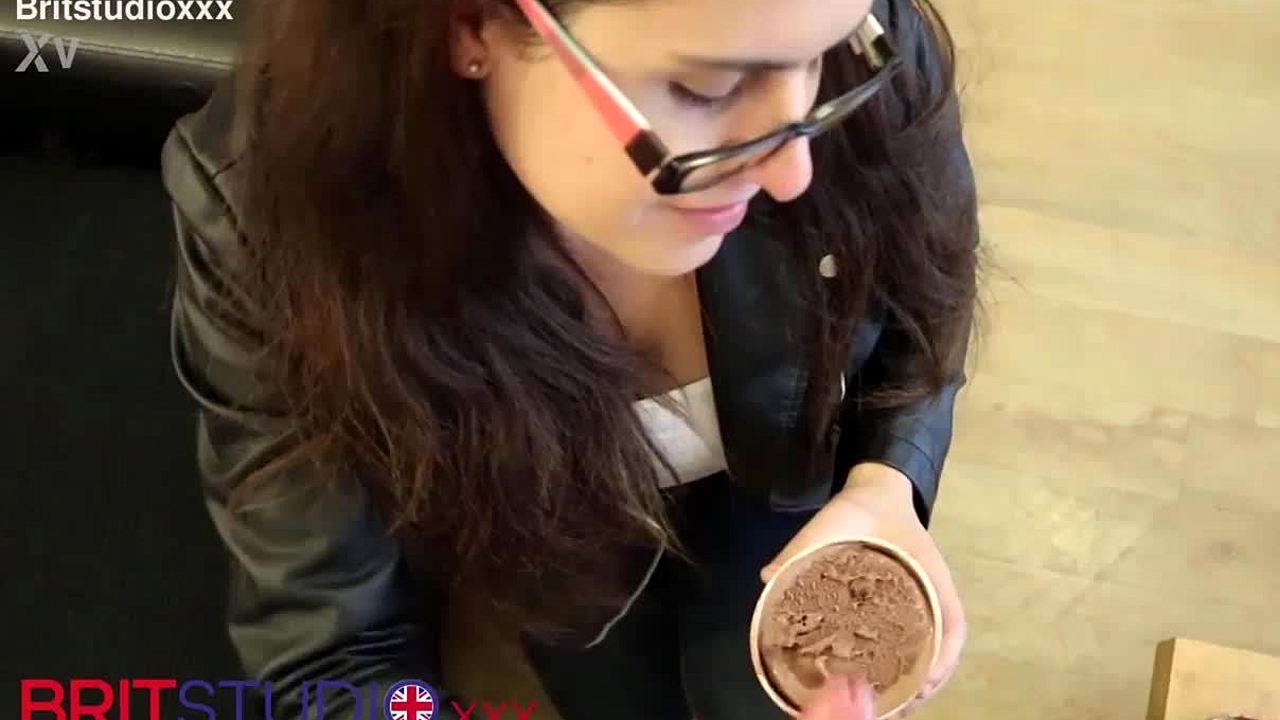 British 18yo Brunette Eats Cum-Topped Ice Cream Hungrily