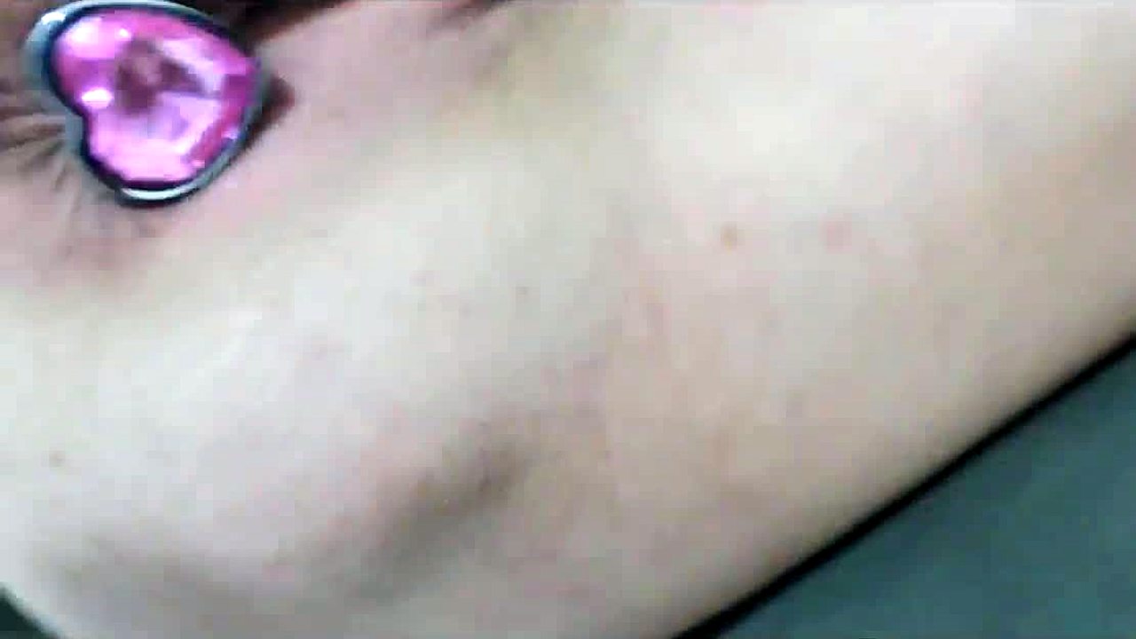Blue-haired punk screams in ecstasy during anal butt plug webcam show!